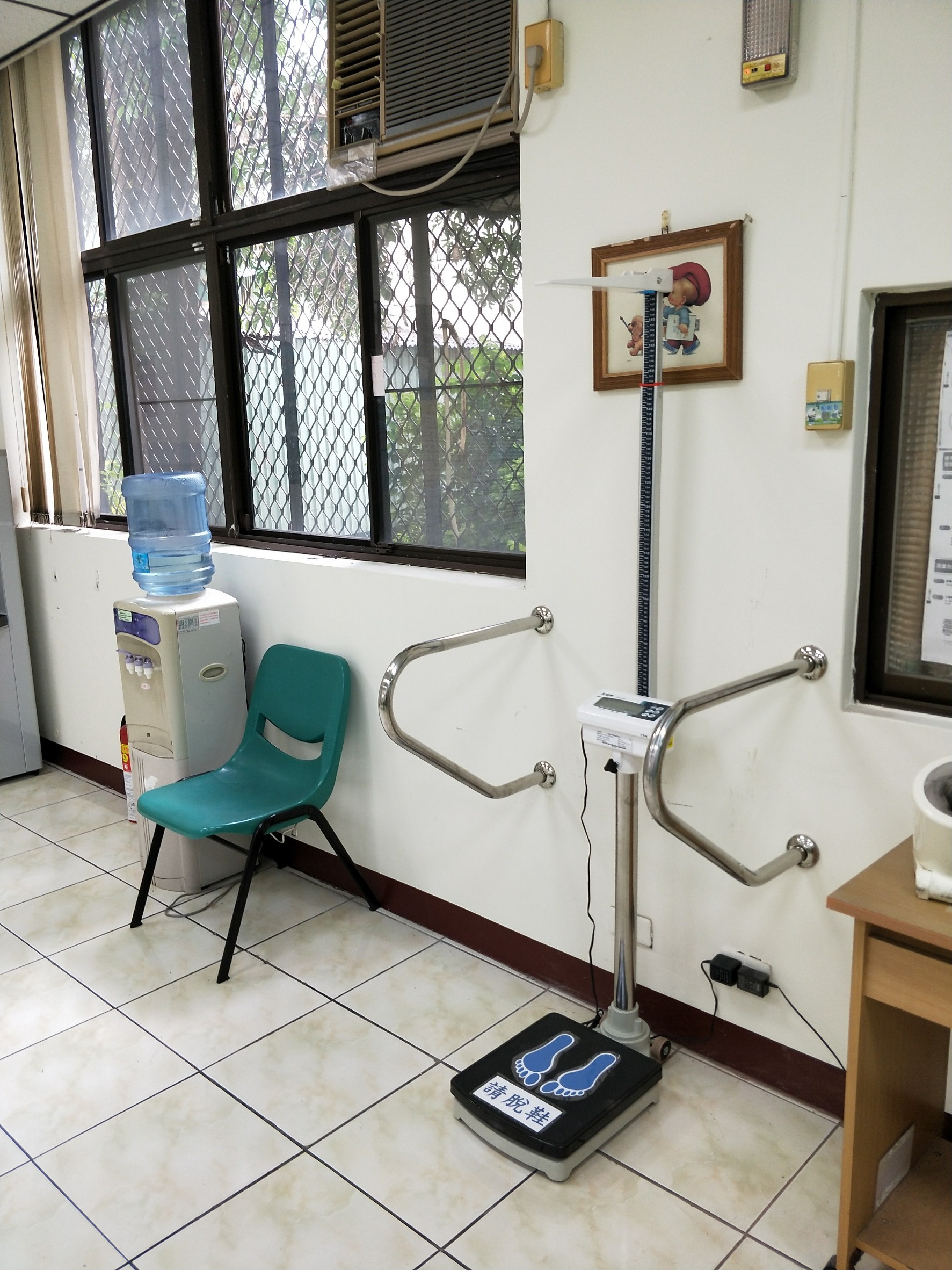 因應最新無障礙法規,將無障礙廁所施作錯誤之扶手及求助鈴改為符合法規的設備,前鎮衛生所也為了高齡長者能安全的量身高體重,在體重機兩旁安裝了扶手,以便高齡長者方便上下